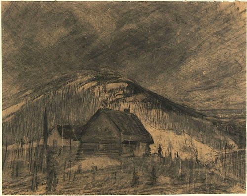 Fusain sur papier brun