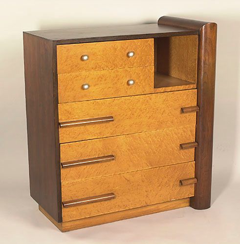 Pin, placage d'érable, noyer et métal
