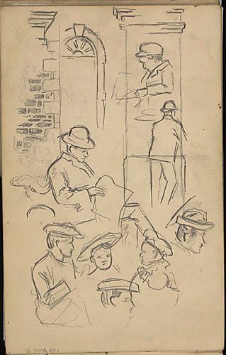 Dessins d'éléments architecturaux et études de personnages