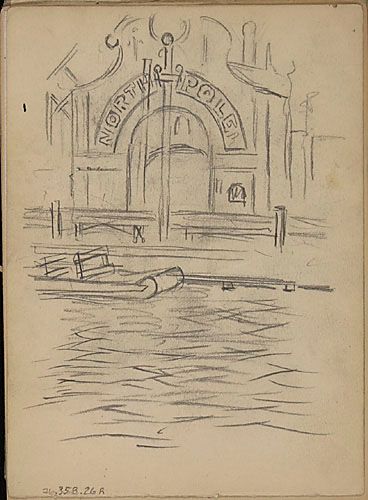 Entrée du pavillon du « Pôle Nord » au parc Dominion à Montréal et étude d'un canot des glissoires aquatiques (Shout the Chutes)