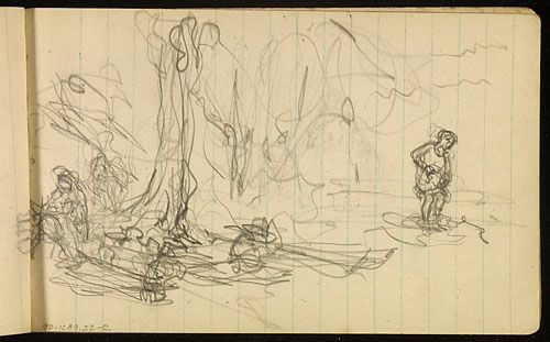 Étude de lavandières et d'une femme au bain