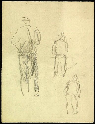 Étude de personnages masculins vus de dos