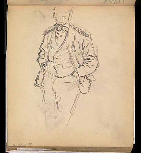Étude d'un personnage masculin pour « En attendant la malle dans un bureau de poste à la campagne »