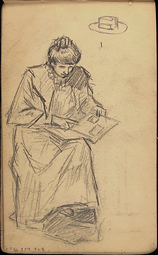 Étude d'une jeune femme feuilletant un album