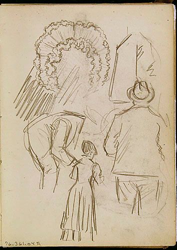 Études de personnages et étude (bonnet) pour une annonce de la Cie d'Auvents des Marchands Ltée de Montréal, de la série des « Lutins »