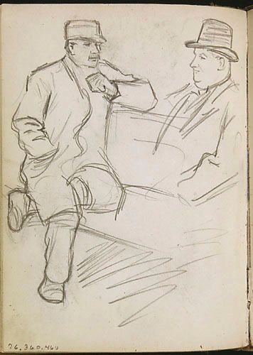 Études de personnages masculins assis sur un banc