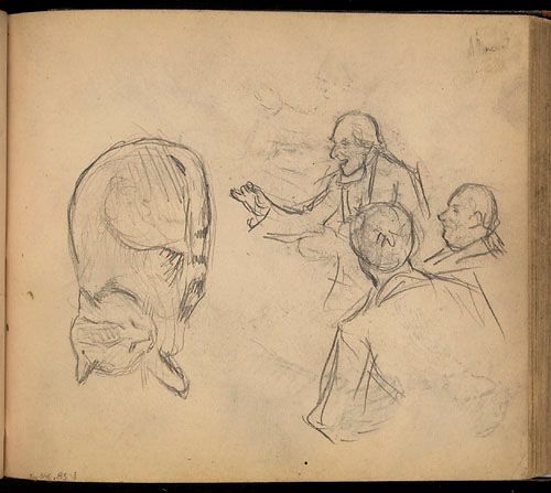 Études d'un chat et de personnages écoutant un conteur