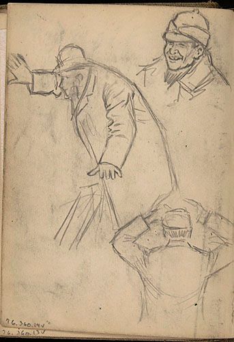 Études d'un homme appuyé et de personnages