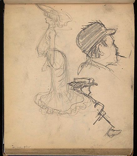 Études d'une élégante au cache-corset et de personnages