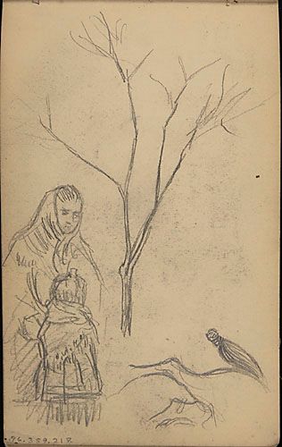 Études d'une mère et d'un enfant, d'un arbre dénudé, et de la partie postérieure d'un cheval