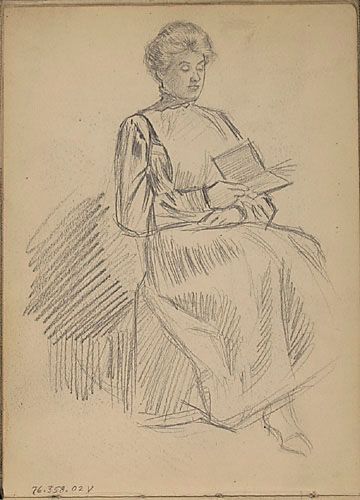 Jeanne Veillette, cousine de l'artiste, lisant