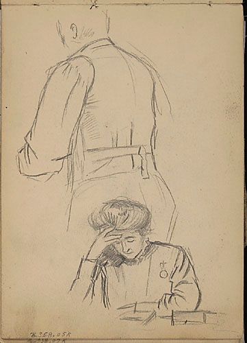 Jeanne Veillette lisant et étude d'homme au gilet