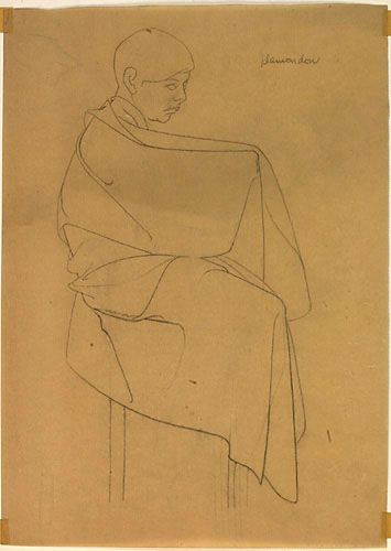 Jeune Homme assis de profil, enveloppé dans une chape