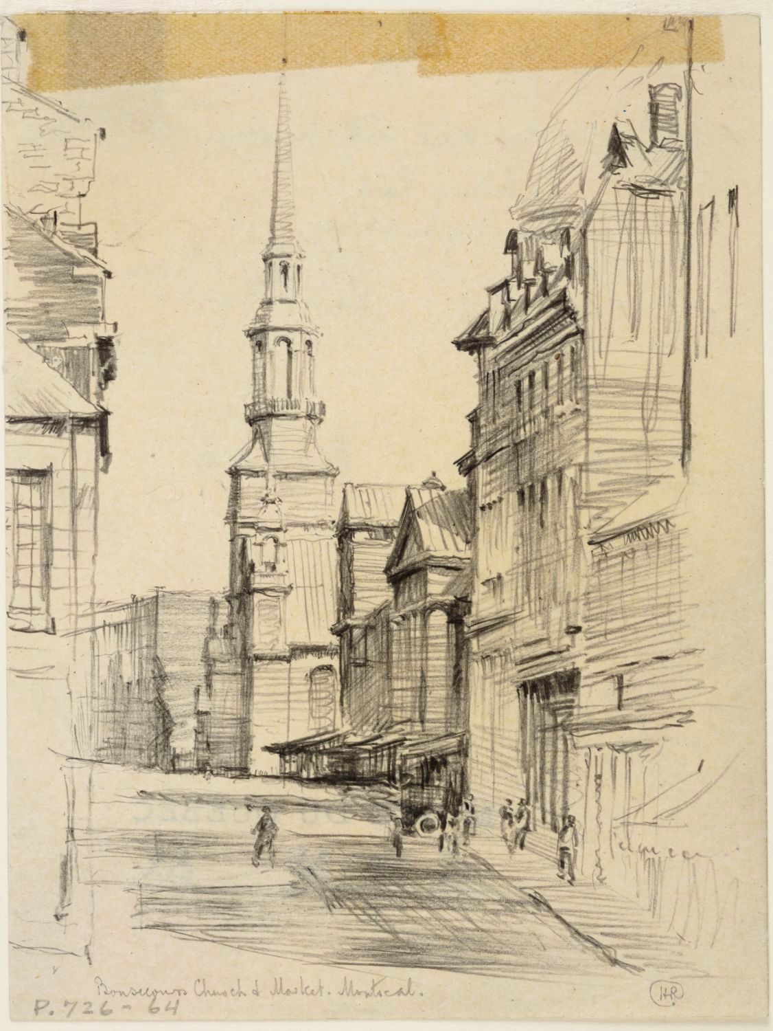 La Rue Saint-Paul, avec la Chapelle Notre-Dame-de-Bon-Secours et le Marché Bonsecours, à Montréal (vue vers l'est)