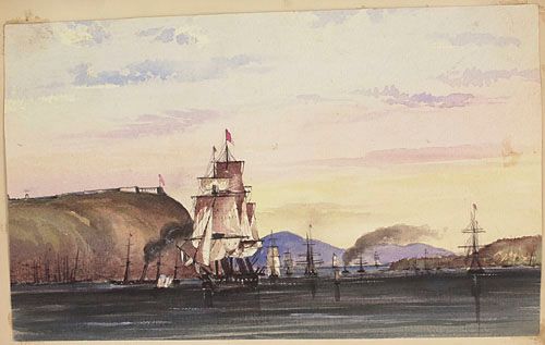 L'Approche de Québec par le Saint-Laurent, à partir de l'ouest, de l'album du capitaine Frederick Stevenson