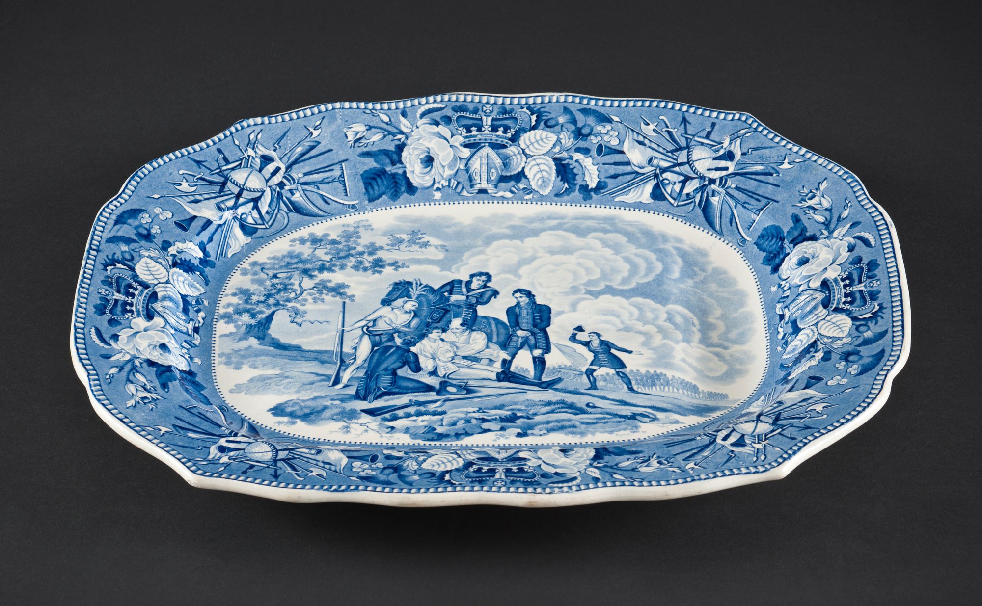 Plat à rôti avec une scène représentant la mort du général Wolfe