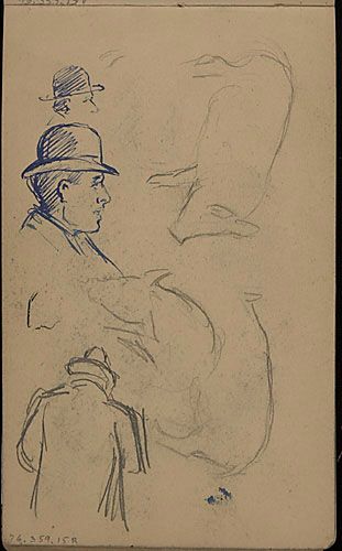Portrait d'homme, études de personnages et esquisses d'un porc