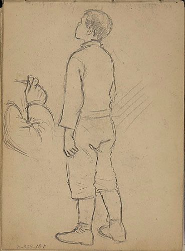 Portrait d'un jeune garçon et étude (bras droit) pour «Une veillée d'autrefois» (1915)
