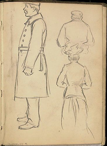 Portrait d'un policier en capote de service et édudes de personnages