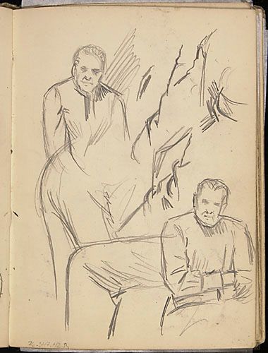 Portraits esquissés d'Adèle Bertrand, mère de l'artiste, et études de costume