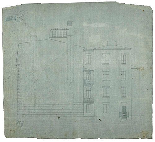 Résidence de l'artiste aux 92-94, rue Saint-Denis, Montréal. Élévation de côté