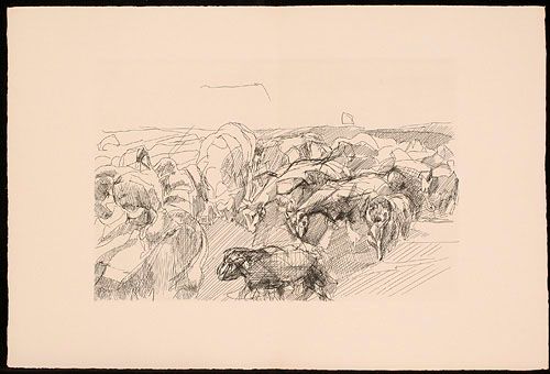 Seules, les brebis, à cause de leur abondante toison, ne sont pas atteintes par la force pénétrante de Borée, du livre d'artiste «Les Travaux et les jours»