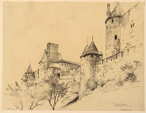 Vue de la Cité et de la Porte de l'Aude, à Carcassonne (France)