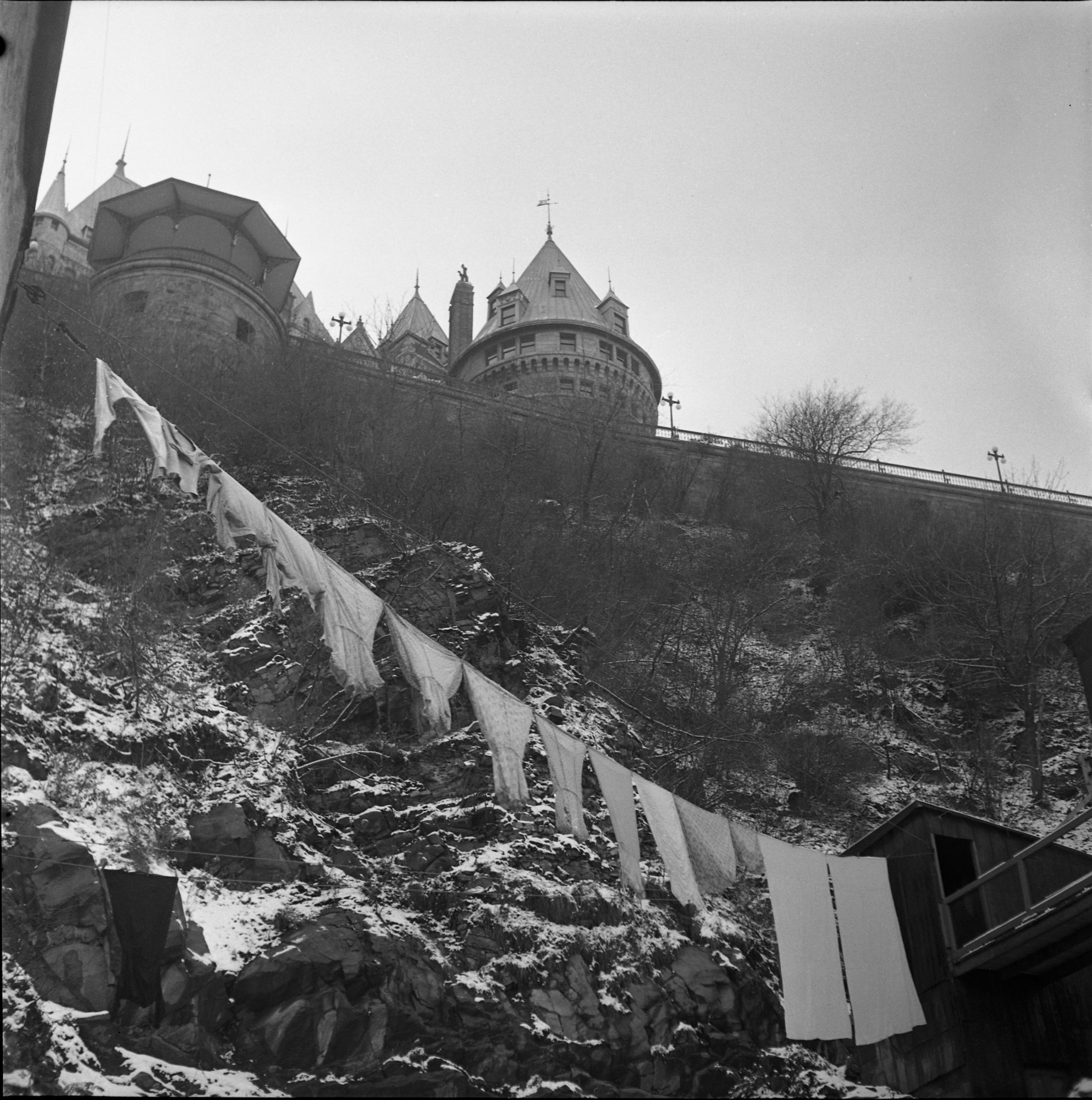 Groupe d'élèves de l'École Moderne photographié avec des sculptures de la collection Paul Gouin, assis dans un escalier du Musée de la province, Québec