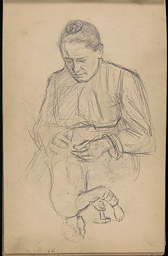 Adèle Bertrand, mère de l'artiste, et étude d'un personnage au marteau