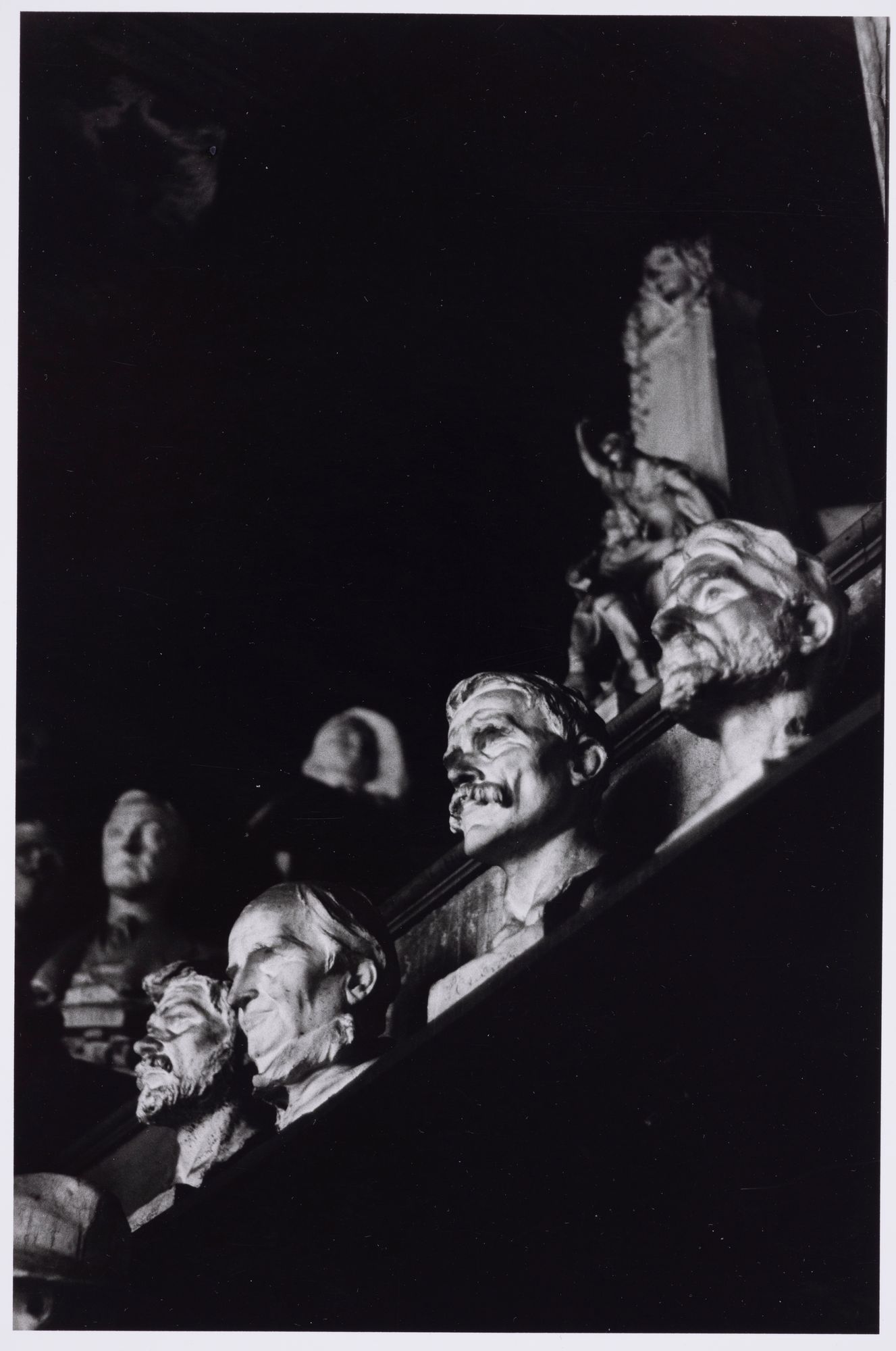Atelier d'Alfred Laliberté. Un alignement de bustes sur une tablette