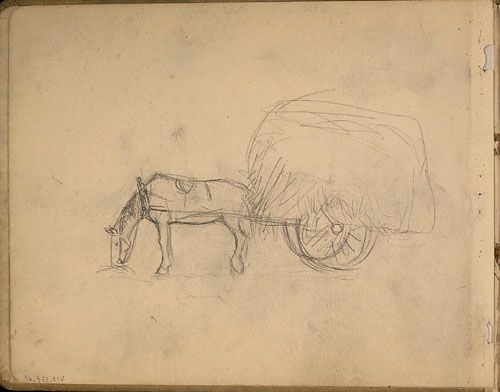 Cheval attelé à une charrette à foin, étude pour « La Fenaison au Canada »
