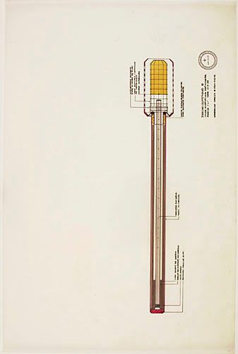 Coupe schématique préliminaire pour la torche officielle des Jeux de la XXIº olympiade de Montréal, 1976
