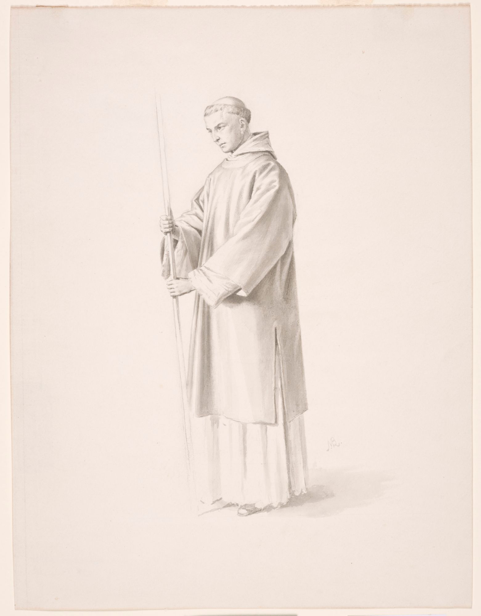 Dominicain tenant un baton. Étude pour « Saint Hyacinthe fuit Kiev devant l'invasion des barbares » de la cathédrale de Saint-Hyacinthe