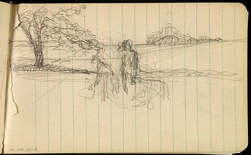 Esquisse de personnages dans un paysage