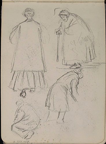 Études de personnages, dont une vieille femme à la cane