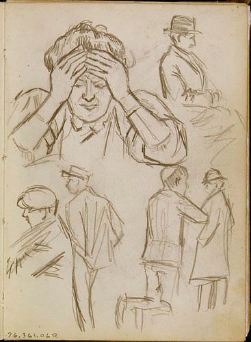 Études de personnages et étude (femme se tenant la tête) pour les « Cachets Gauvin »