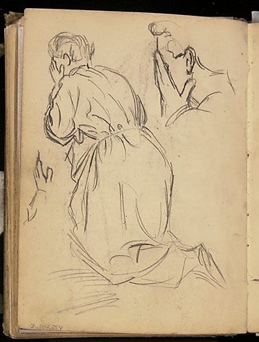 Études d'une femme agenouillée et étude de main