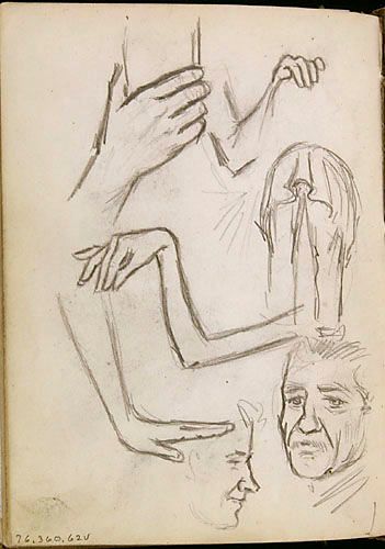 Études (mains et bras) pour une annonce de la Cie d'Auvents des Marchands Ltée de Montréal, de la série des « Lutins »