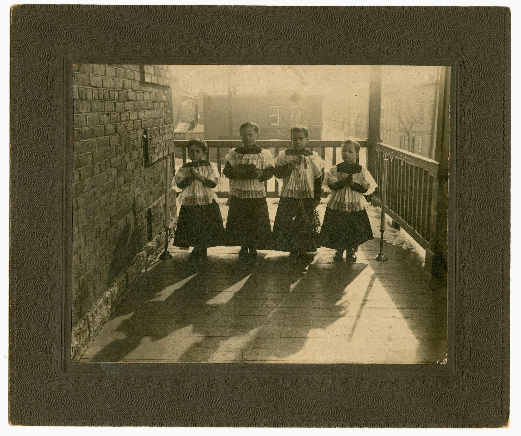 Groupe d'enfants de choeur sur un balcon