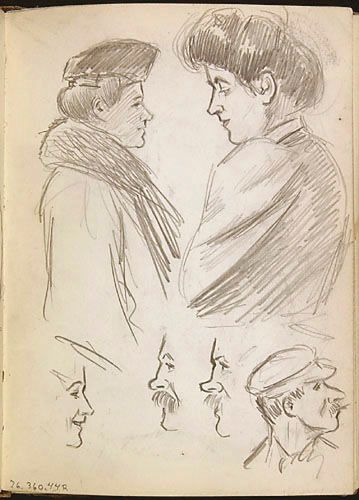 Jeanne Veillette, cousine de l'artiste, et de différents personnages, de profil
