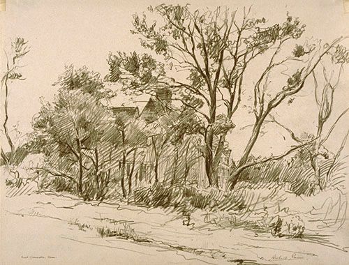 Maison derrière un bosquet, à Gloucester-Est, Massachusetts