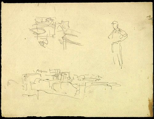Personnage debout et esquisses