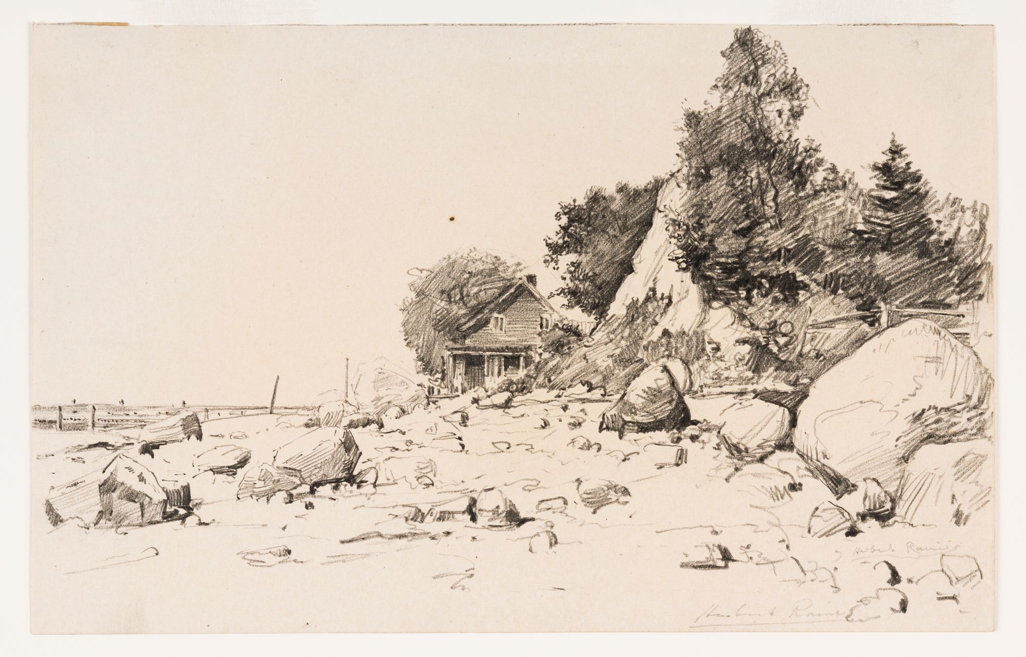 Plage rocailleuse, près du quai, aux Éboulements