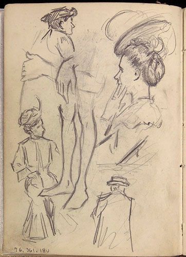 Portrait d'une femme au chapeau et études (jambes et mains) pour une annonce de la Cie d'Auvents des Marchands Ltée de Montréal, de la série des « Lutins »
