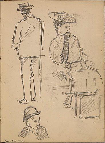 Portrait d'une voyageuse et études de personnages