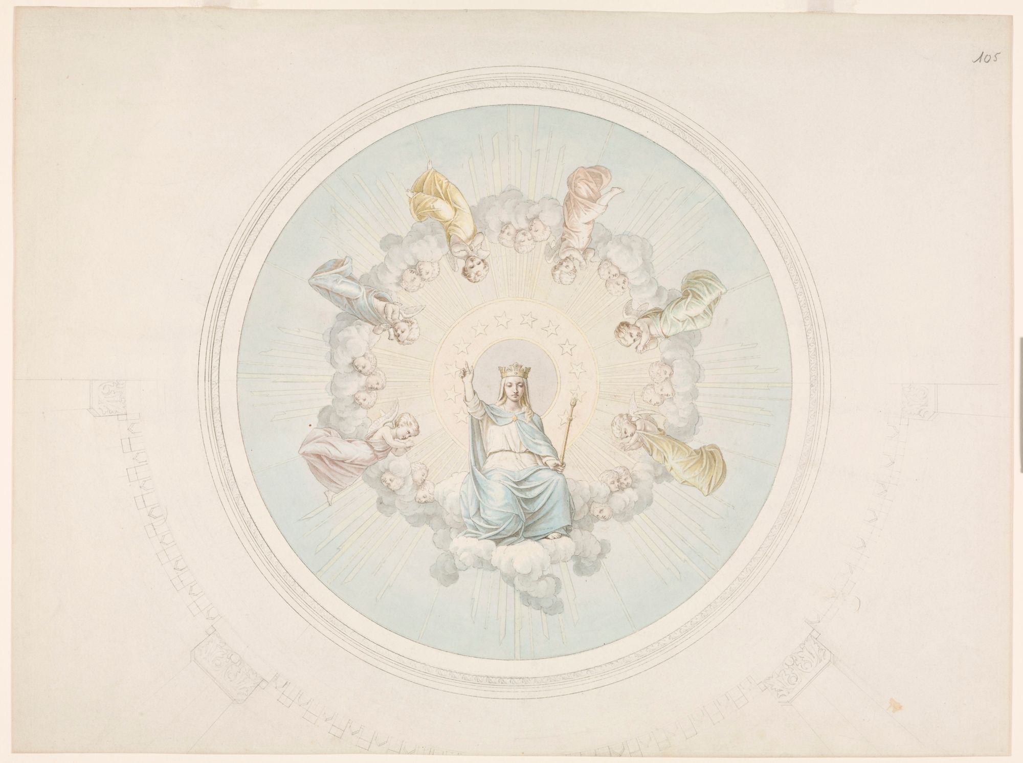 Vierge en gloire. Étude pour la coupole de la chapelle Notre-Dame-de-Lourdes, Montréal